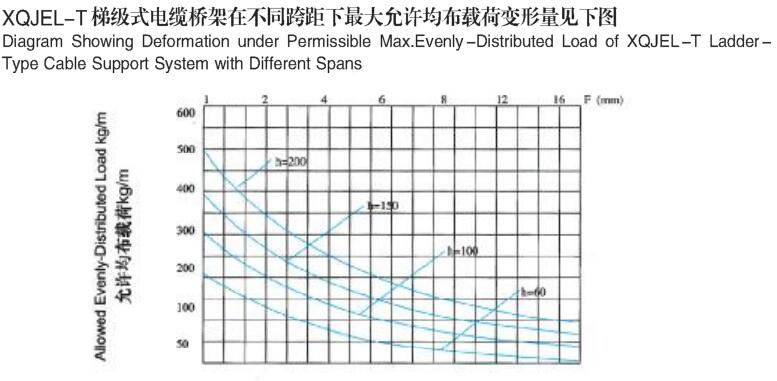 XQJEL_T.03梯式三通產品型號、規格、重量等參數及XQJEL_T梯式電纜橋架在不同跨距下允許均布載荷變形量。