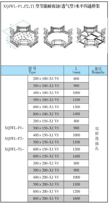 XQJWL-P1、P2、T1型節能耐腐蝕(透氣型)水平四通橋架生產廠家