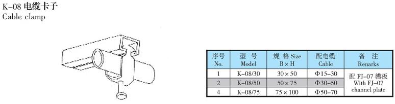 本文將會在K-08電纜卡子的型號、用途、規格、重量等方面做詳細的說明與介紹,江蘇海馳電氣制造有限公司作為是專業的K-08電纜卡子生產廠家,為您選購適合自己的產品做一定的指導是必要的。