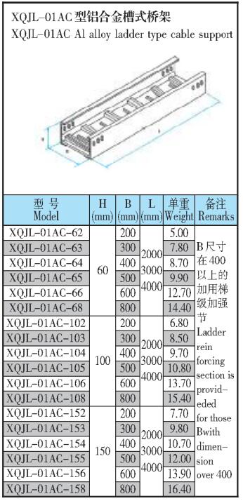 本文將會在XQJL-01AC型鋁合金槽式橋架的型號、用途、規格、重量等方面做詳細的說明與介紹,江蘇海馳電氣制造有限公司作為是專業的XQJL-01AC型鋁合金槽式橋架生產廠家,為您選購適合自己的產品做一定的指導是必要的。