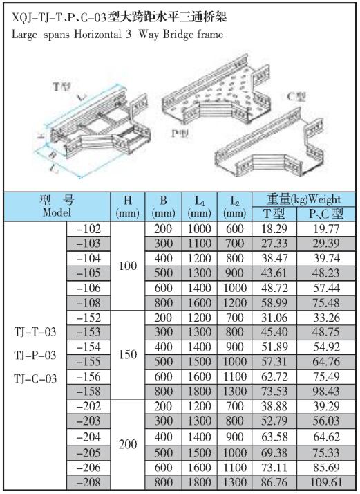 XQL-TJ-T、P、C-03型大跨距水平三通橋架生產廠家